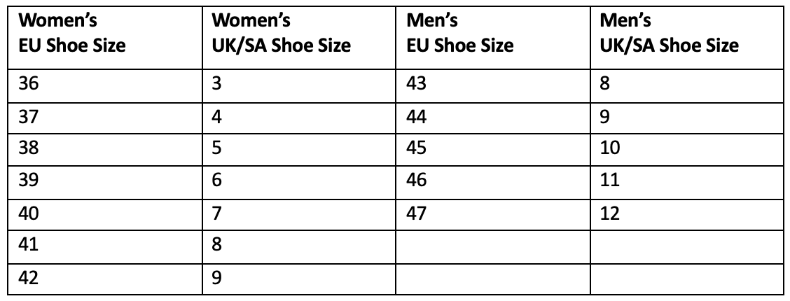 Our sizing and fit guide will help you select the right Art of Soule espadrilles. Sizing guide is available below, under Size Guide. Otherwise, you are welcome to contact us at info@artofsoule.co.za or on 082 929 4943 for more information.